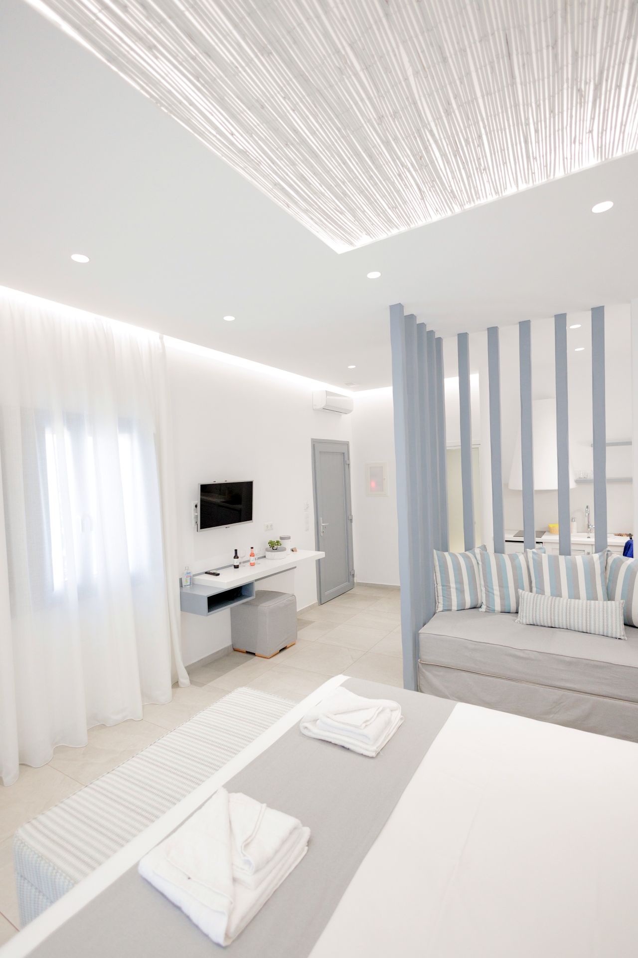 - King size bed (1.80×2.00) (option of two single beds instead of double bed)