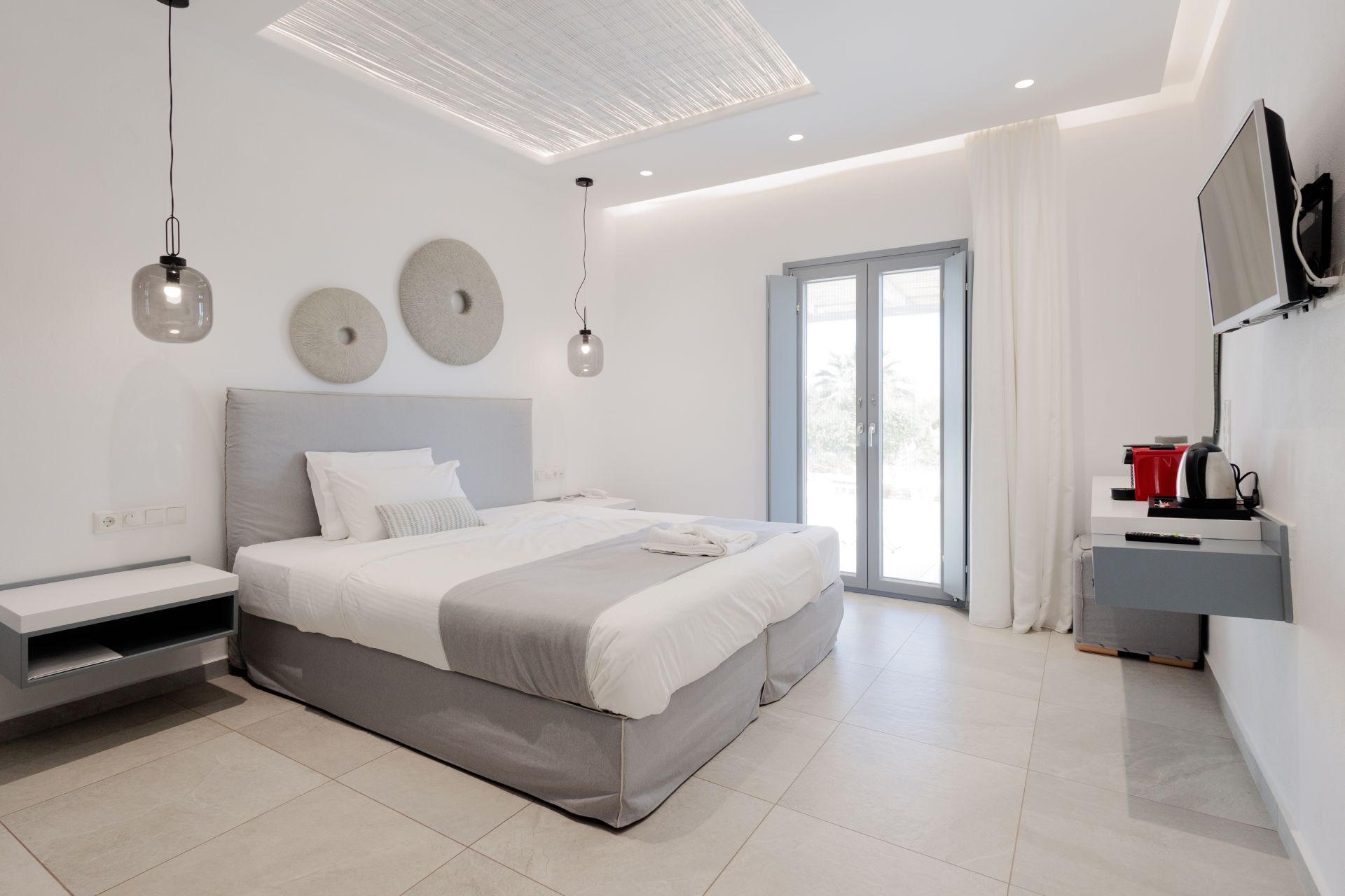 - Κρεβάτι king size (1,80 × 2,00) (επιλογή δύο μονά κρεβάτια ή διπλό κρεβάτι)
